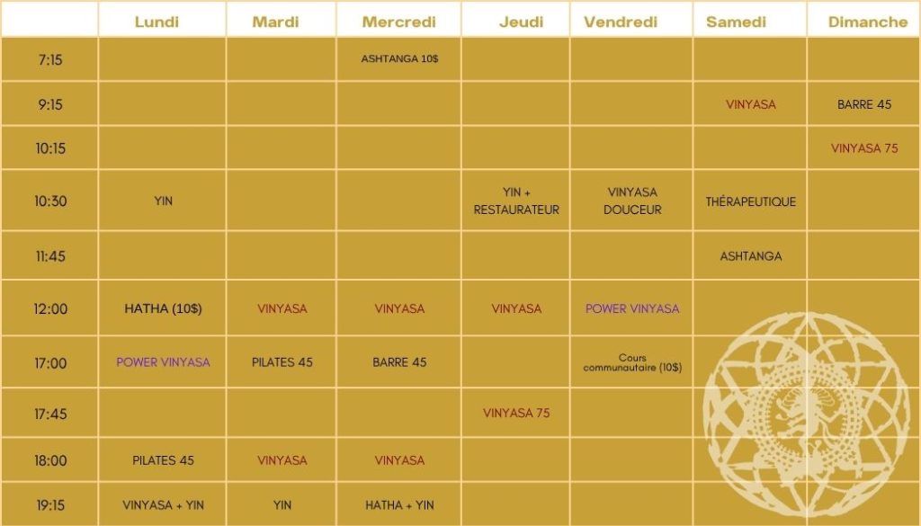 • Cours de yoga montréal : Vinyasa, Hatha, Ashtanga, Yin, respiration (pranayama) et méditation.
